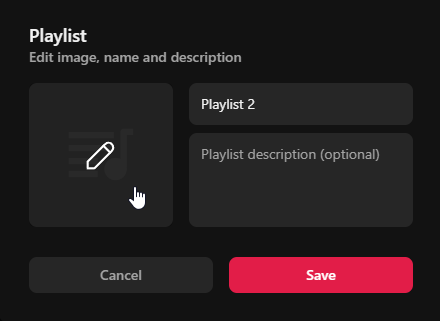 Add playlist name and description and click on ‘Save’ button. If you want to change the playlist cover, click on the pencil icon button.