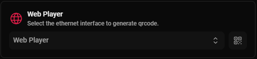 The Web player address is the URL that you can use to access the music Webapp from your smartphone, tablet, or any other device with a web browser. After selecting the network interface, a QR code will be generated with the address to access the Webapp. Click on the QR code button to open the QR code image.