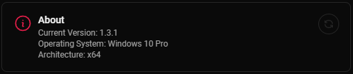 In the “About” section, you can find information about the software version, operating system, and architecture. Click on the refresh button to check for updates.