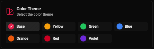 Choose between seven primary color themes: Base, Yellow, Green, Blue, Orange, Red, and Violet.
