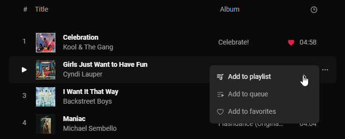 - Add to playlist,
