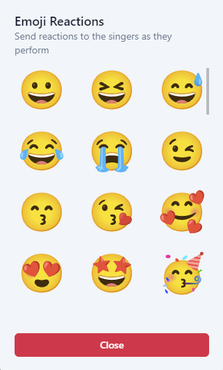 Click on the emoji icon to send emoji reactions to the karaoke screen.